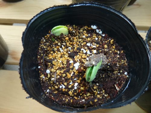 5/13に種をまいた枝⾖の芽が出ました。去年はポットに3粒づつ蒔いてほとんど発芽したのですが、旦那さんが「どれも可愛くて間引けない」と間引きなしで育てたせいか、背は伸びたけれどぴょろぴょろになってしまいました。今年は⿁になる!と⾔っていますが、すでにどの⼦も愛おしいご様⼦…。