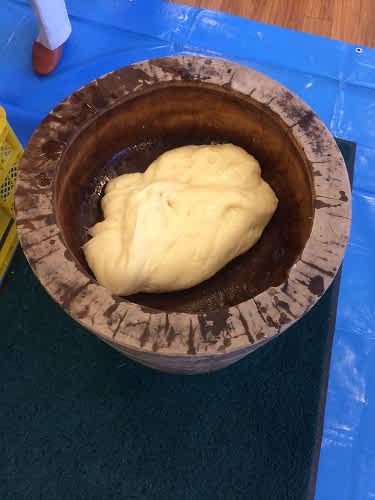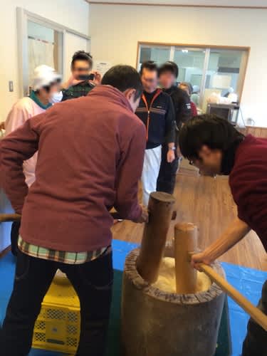 13:00。役場に集合して、公民館へ。地元の方々と一緒に餅つきをしました。